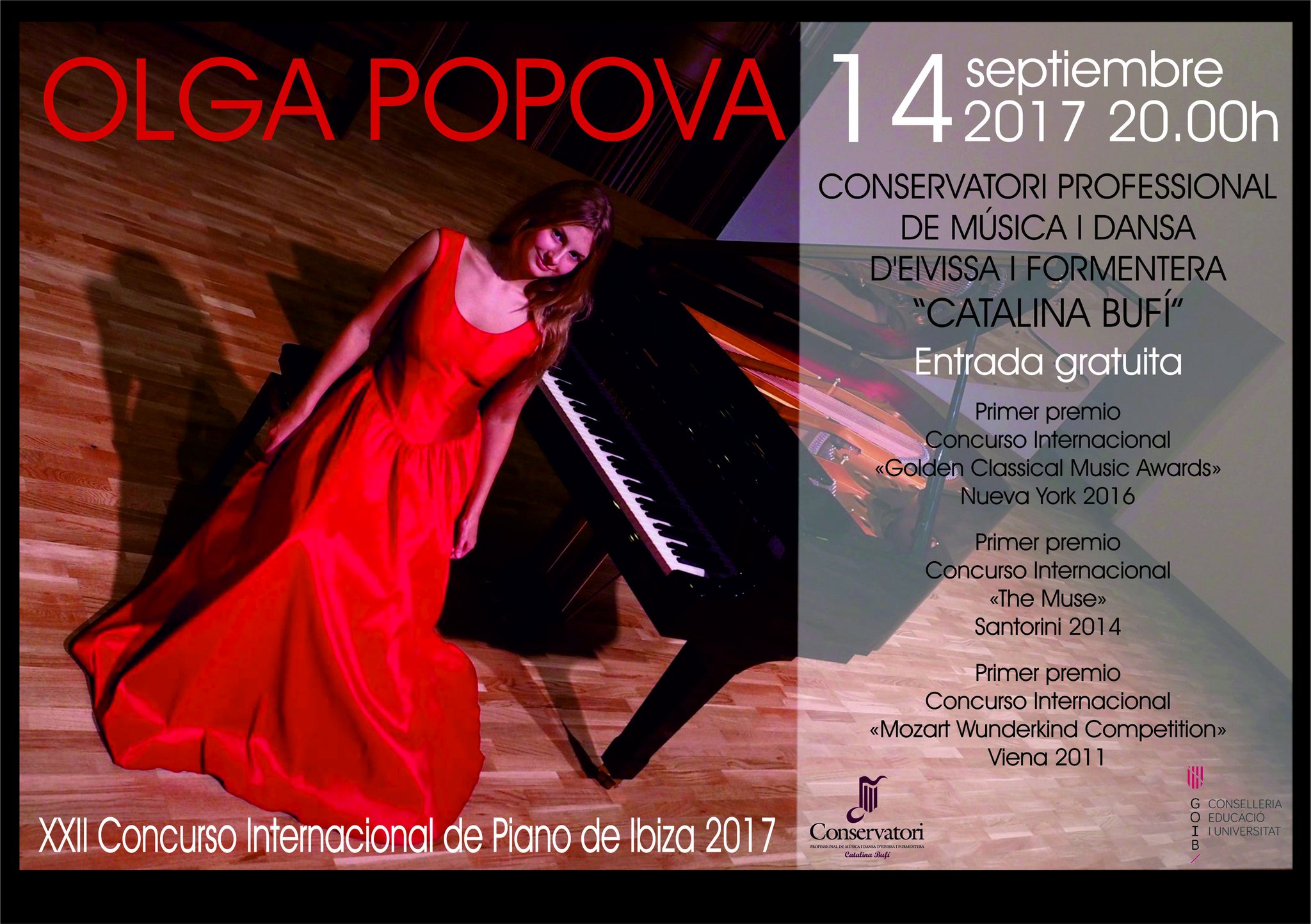 Concert de piano a càrrec de Olga Popova. A les 20:00h a l'Auditori del Conservatori. Entrada gratuïta.